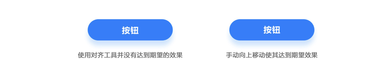 我們時(shí)常會(huì)遇到這種情況,例如畫一個(gè)按鈕,里面有文字,一般來說文字都是水平垂直居中對(duì)齊這個(gè)按鈕,于是我們會(huì)使用對(duì)齊工具。然而有時(shí)從效果上看,文字并沒有垂直居中對(duì)齊,那是因?yàn)槲淖衷谖幢晦D(zhuǎn)曲或者刪格化時(shí),它的字體存在間隙。但總不能為了對(duì)齊就把文字柵格 / 轉(zhuǎn)曲,因此還需要用移動(dòng)工具去調(diào)整位置。