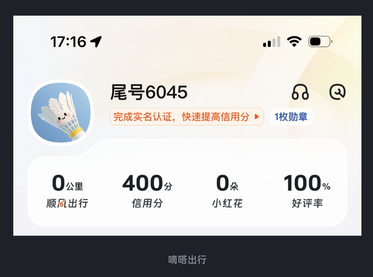 個(gè)人中心是所有 APP 的 “標(biāo)配模塊”,但多數(shù)設(shè)計(jì)仍難逃 “頭像 + 列表” 的呆板布局,要么頭像過大導(dǎo)致周圍負(fù)空間浪費(fèi),要么頭像過小失去視覺焦點(diǎn)。嘀嗒出行的個(gè)人中心設(shè)計(jì),卻用一個(gè)巧妙的 “結(jié)構(gòu)嵌合” 思路打破了這種局限。