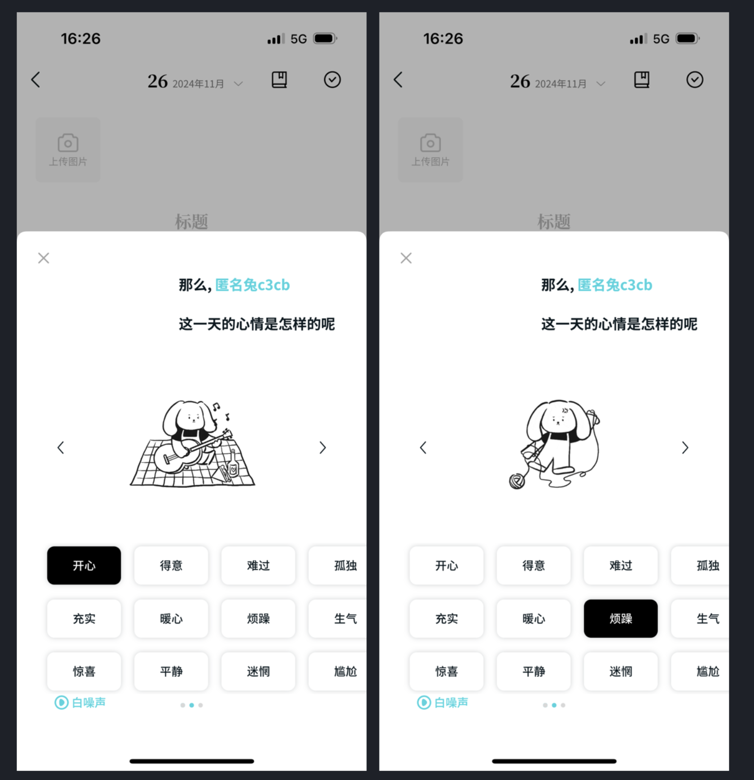 記日記時(shí)選 “心情標(biāo)簽”,是很多人記錄生活的習(xí)慣,但常規(guī)設(shè)計(jì)要么是單調(diào)的文字(“開心”“難過”),要么是簡單的表情符號,總少點(diǎn)代入感。