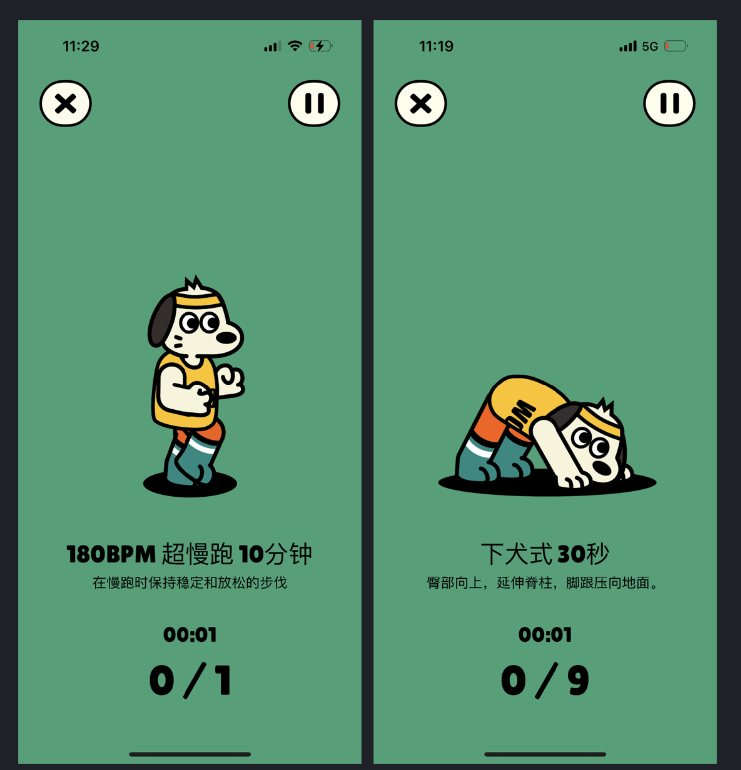 打開 Rumbo,全程有個(gè)圓滾滾的卡通角色跟著你:做 “下犬式” 時(shí),它會同步擺出同款姿勢,還會用萌萌的語氣提示 “腳跟再往下壓一點(diǎn)哦”;完成一組動(dòng)作,它會搖著尾巴給你點(diǎn)贊。這個(gè) IP 形象不是簡單的裝飾 —— 它把 “一個(gè)人運(yùn)動(dòng)” 變成了 “和小伙伴一起打卡”,減少了用戶的孤獨(dú)感;甚至有用戶說 “為了看它夸我,都愿意多練 5 分鐘”。