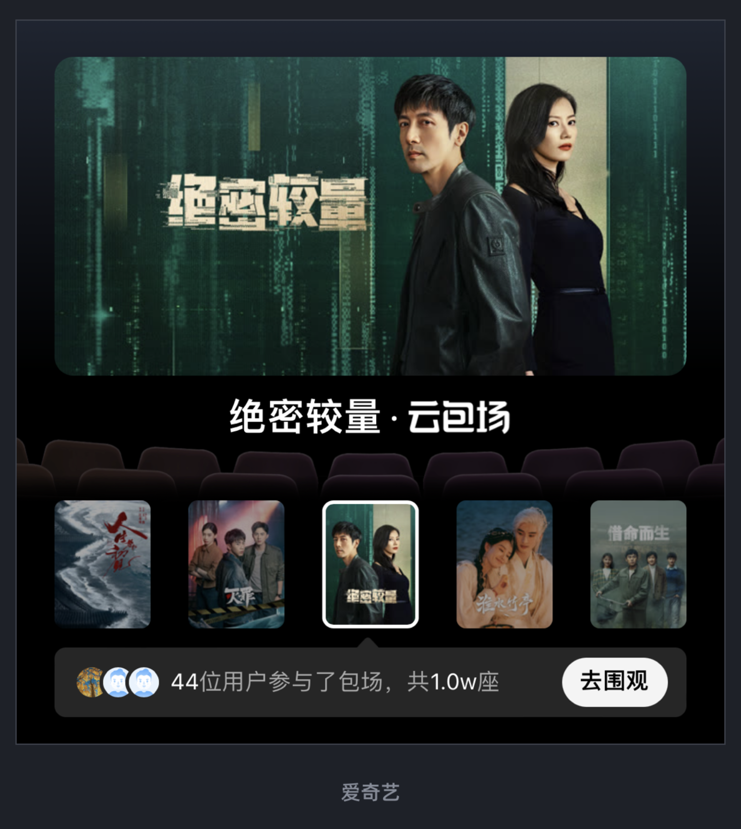 愛奇藝 “云包場” 欄目完美詮釋了這一點:將影院觀影的場景搬到線上,通過模擬影廳座位、觀眾參與人數(shù)等元素,讓用戶感受到 “和陌生人一起看電影” 的氛圍感。這種設(shè)計不僅讓 “云包場” 功能更直觀,還提升了用戶的參與意愿,讓功能不再是冰冷的按鈕。