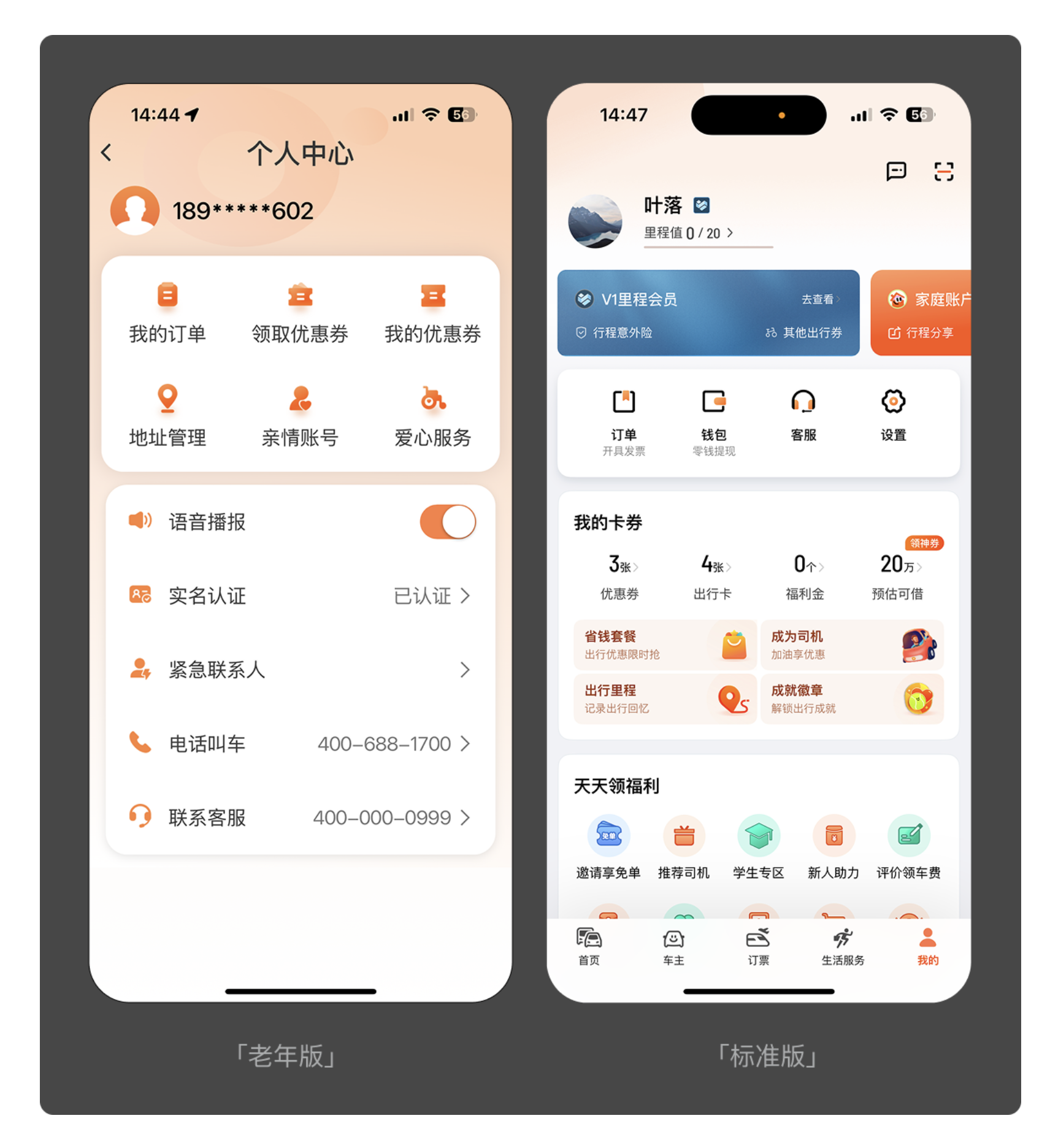 老年用戶的操作耐心與記憶能力相對有限,過多的點擊步驟和冗余功能會顯著增加使用門檻。滴滴老年版的設(shè)計堪稱典范:摒棄了標(biāo)準(zhǔn)版 “輸入目的地 - 選擇車型 - 確認叫車” 的復(fù)雜流程,在首頁直接設(shè)置 “呼叫出租車” 核心按鈕,老人無需額外學(xué)習(xí),點擊即可發(fā)起叫車,直觀又高效。無獨有偶,QQ 老年版也對 “動態(tài)查看” 功能進行了優(yōu)化,標(biāo)準(zhǔn)版需要兩次點擊才能進入的頁面,老年版只需一次點擊便可直達,大幅提升了操作效率。這種 “減法設(shè)計” 的核心,是剝離非必要功能,讓老人的注意力集中在核心需求上,避免被無關(guān)信息干擾。