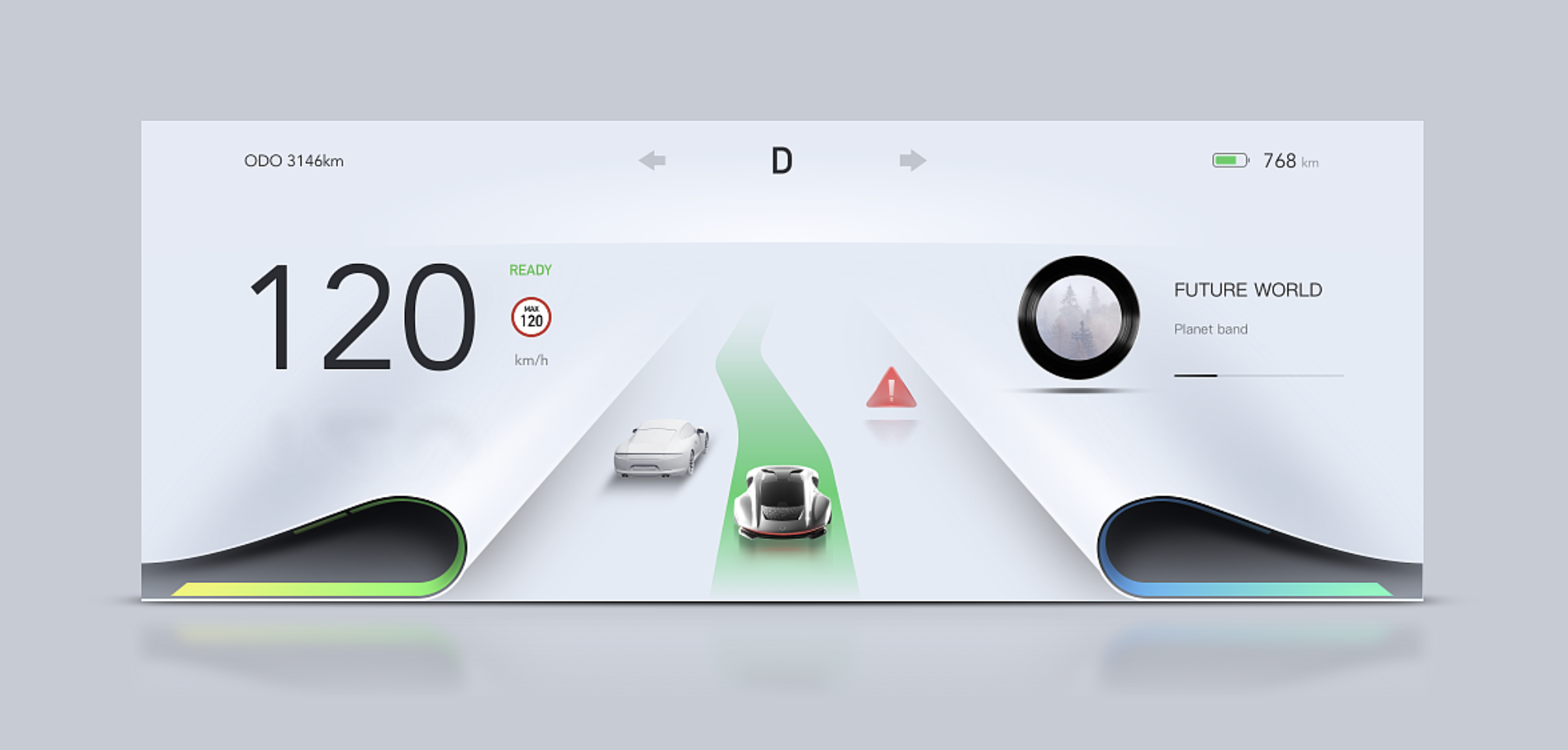 添加微小的情感化設(shè)計,提升用戶好感度:例如車速過快時,儀表邊緣光影從藍色漸變至橙色,以視覺提示替代生硬的文字警告;電量充足時,背景紋理呈現(xiàn)柔和的光暈效果,傳遞安心感;導(dǎo)航轉(zhuǎn)向提示時,用流暢的動態(tài)線條引導(dǎo),避免突兀的圖標閃爍。情感化設(shè)計需 “潤物細無聲”,避免過度花哨影響核心功能使用。