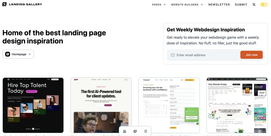 [Landing Gallery](http://landing.gallery) 專(zhuān)注于提供各個(gè)領(lǐng)域的著陸頁(yè)設(shè)計(jì)靈感。無(wú)論你需要設(shè)計(jì)什么類(lèi)型的頁(yè)面,從主頁(yè)、定價(jià)頁(yè)面到聯(lián)系頁(yè)面,甚至是404錯(cuò)誤頁(yè)面,這里都能找到優(yōu)質(zhì)的參考案例。