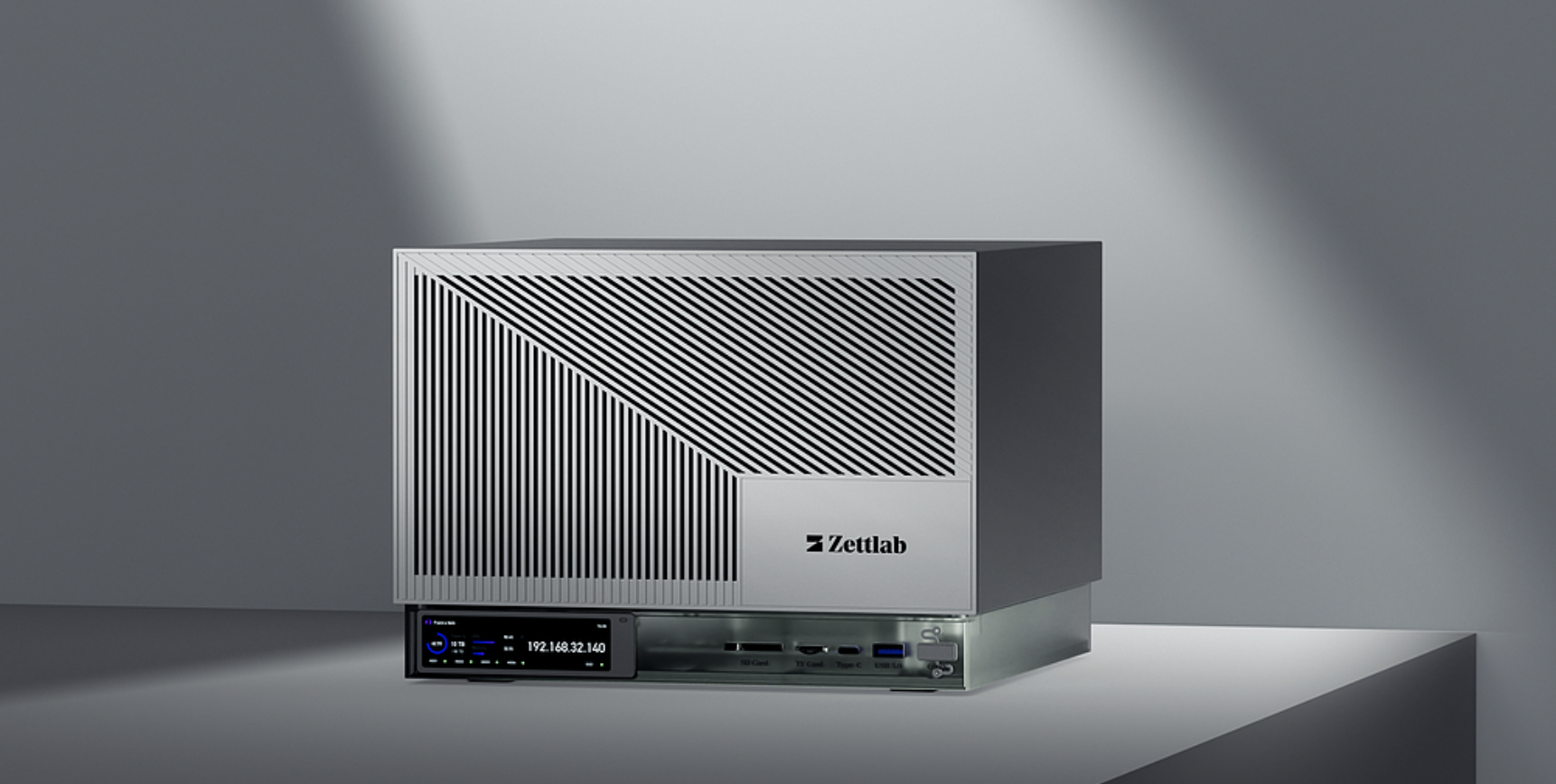 品牌形象的落地并非局限于視覺符號,而是貫穿于產(chǎn)品體驗、傳播場景的全鏈路。Zettlab AI NAS 的外觀設(shè)計秉持 “去設(shè)備化” 理念,以幾何構(gòu)成主義還原自然之美,打破傳統(tǒng) NAS 的沉悶刻板,實現(xiàn)簡約、科技與藝術(shù)的交融;功能上,集成 LED 智能顯示屏實時反饋設(shè)備狀態(tài),本地 AI 聊天機器人提供離線協(xié)助,智能搜索支持關(guān)鍵詞與自然語言查詢,將專業(yè)級存儲設(shè)備的易用性提升至消費電子水平。海外眾籌視頻則聚焦用戶痛點,通過機械臂拍攝呈現(xiàn)多場景應(yīng)用,直觀展現(xiàn)產(chǎn)品在簡化創(chuàng)作流程、提升協(xié)作效率上的優(yōu)勢,讓 “存儲無限潛能” 的理念具象化。