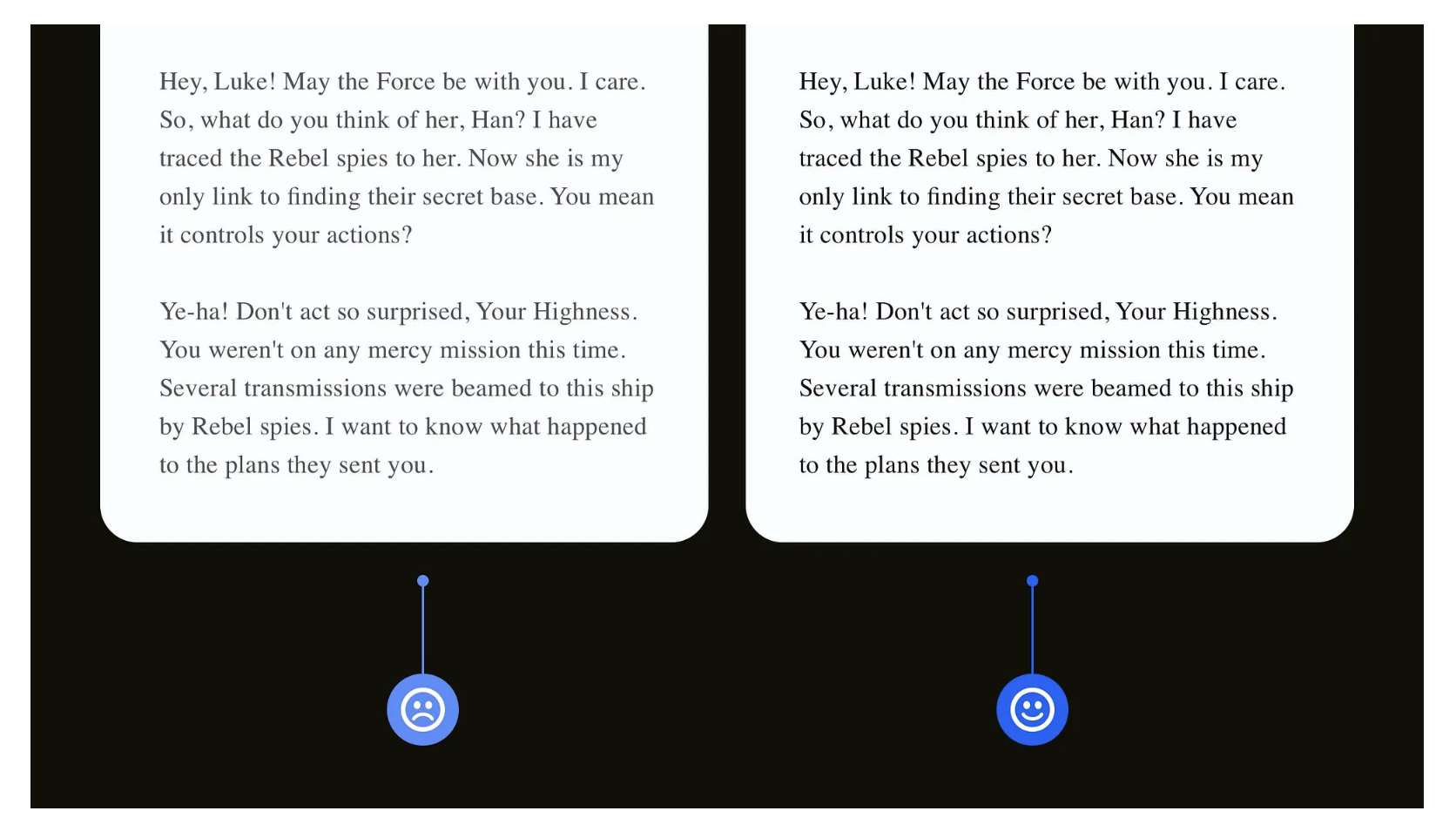 不少設(shè)計(jì)師為了追求簡(jiǎn)約高級(jí)的視覺(jué)效果,會(huì)給大段文字用淺灰色系。但這種設(shè)計(jì)在不同尺寸的屏幕上,會(huì)嚴(yán)重降低文字的可讀性。