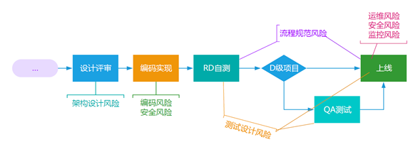 為了保障系統(tǒng)穩(wěn)定性,提前消除風(fēng)險勢在必行。產(chǎn)品質(zhì)量風(fēng)險類型很多,產(chǎn)品研發(fā)流程的各個階段都可能引入和存在風(fēng)險,每個階段的風(fēng)險的類型和發(fā)現(xiàn)手段都不盡相同,為此產(chǎn)出如下風(fēng)險模型。按照風(fēng)險發(fā)生的階段及原因,風(fēng)險類型可分為:架構(gòu)設(shè)計風(fēng)險、編碼風(fēng)險、安全風(fēng)險、流程規(guī)范風(fēng)險、運維風(fēng)險和監(jiān)控風(fēng)險。