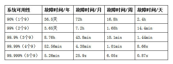 首先,為了讓大家更好了解這些故障對業(yè)務(wù)系統(tǒng)穩(wěn)定性的影響程度,需了解下何為穩(wěn)定性,衡量指標就是系統(tǒng)可用性= MTBF / (MTBF + MTTR) , 其中MTBF, Mean Time Between Failure, 是平均無故障時間, 而MTTR, Mean Time To Repair,是平均修復(fù)時間,參考下表更加直觀。