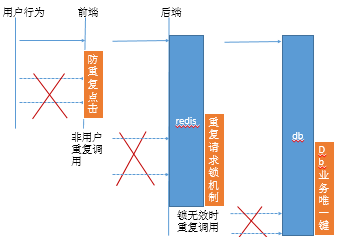 對于防重入可總結(jié)三點,前端加入防重復(fù)點擊設(shè)置,接口層加入鎖機制,db層需要加入唯一鍵設(shè)置。