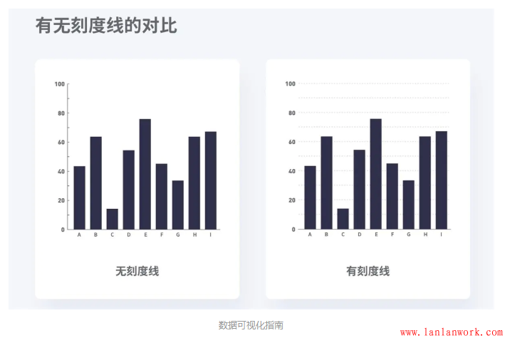 (1)根據(jù)數(shù)據(jù)特點選擇橫縱向輔助線,橫向引導(dǎo)線增強水平方向的導(dǎo)視。縱向引導(dǎo)線增強垂直方向的導(dǎo)視。