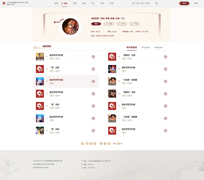 中華民族音樂傳承出版工程是中央宣傳部《中華優(yōu)秀傳統(tǒng)文化傳承發(fā)展工程“十四五”重點項目規(guī)劃》中提出的重點項目,該服務(wù)平臺是為號召相應(yīng)項目的支持下得以建設(shè)。該平臺是對全民開放的一個網(wǎng)站,針對對民族音樂文化感興趣的或者是民族音樂文化的相關(guān)研究人員都可以使用。